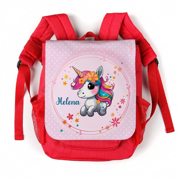 Striefchen® Red Children's Backpack with Name Print / Unicorn, red