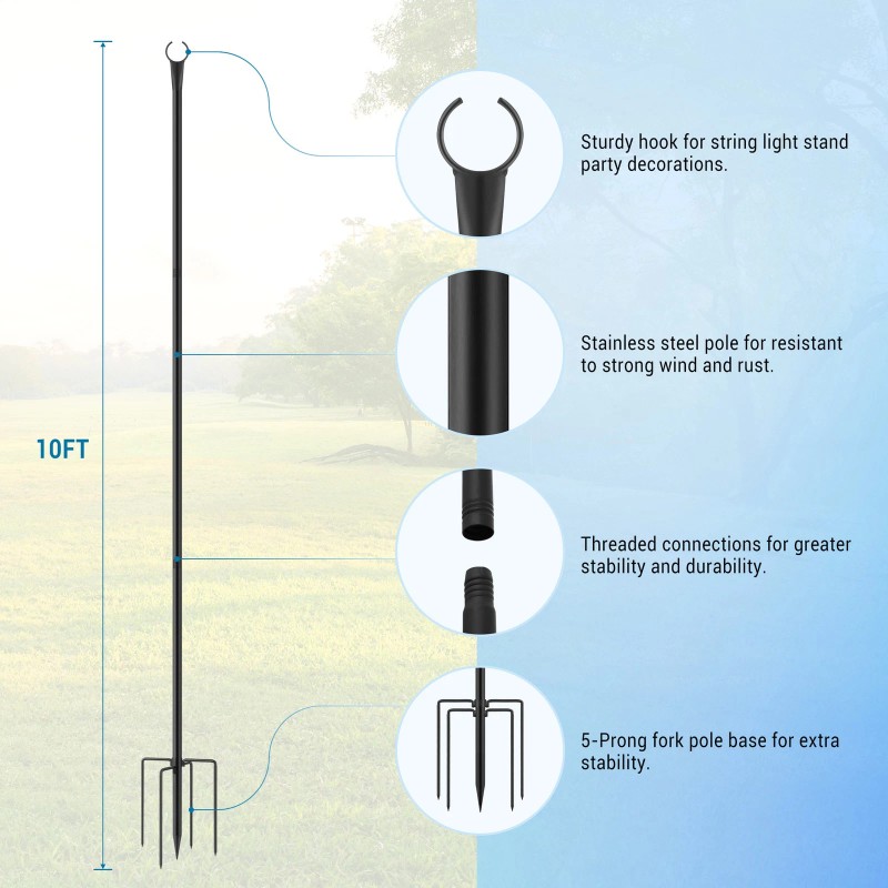 - MULTIPLE USE OCCASIONS: Perfect for a variety of events like Christmas, Halloween, birthdays, and weddings, these light poles allow you to creatively hang string lights, banners, lanterns, and more to elevate any outdoor gathering.