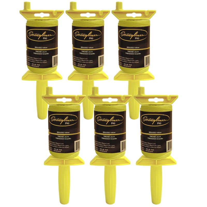 Stringliner 25450 Pro Mason’s Line Reels – 1/2 Lb. Stringliner® PRO BRAIDED YELLOW 500'. (6 Pack)
