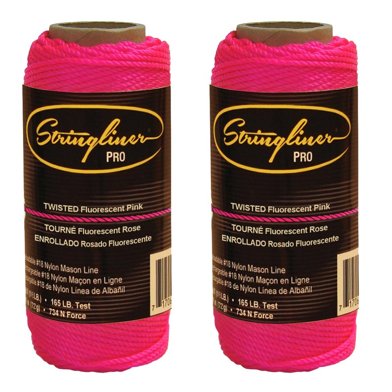 Stringliner 35009 Mason’s Line Replacement Rolls – 1/8 Lb. #18 Construction Replacement Roll Twisted FL Pink 135'. (2 Pack)