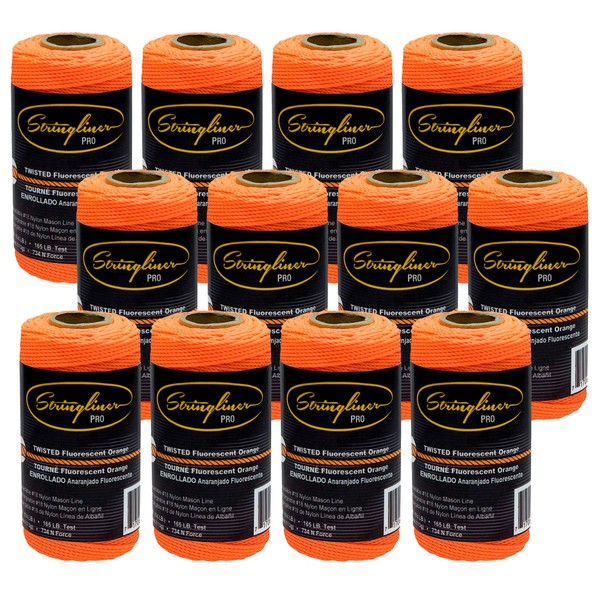Stringliner 35106 Mason’s Line Replacement Rolls – 1/4 Lb. #18 Construction Replacement Roll Twisted Orange 270'. (Pack 12)