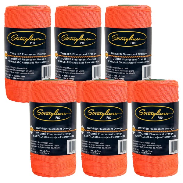 Stringliner 35706 Mason’s Line Replacement Rolls – 1 Lb. #18 Construction Replacement Roll Twisted FL Orange 1080'. (6 Pack)