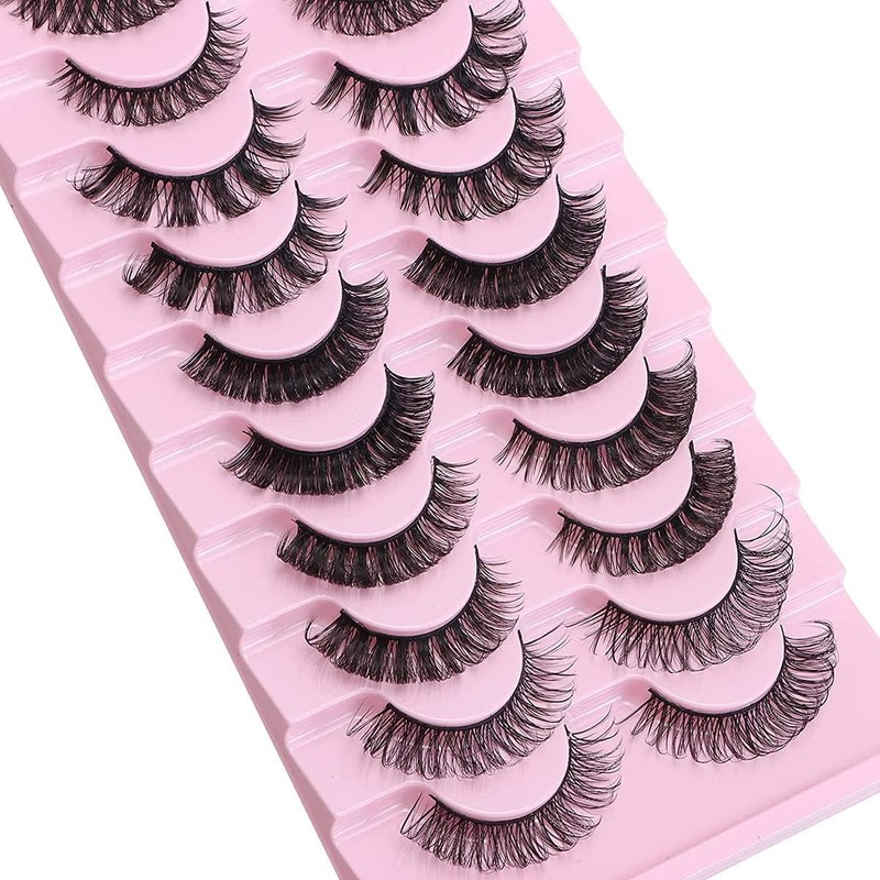Strip Lashes False Lashes 10 Pairs 5 Styles Natural Look Clear Band Light Weight Wispy Faux Mink Russian Strip Lashes D Curl 3D Crisscross Multi-Layers False Fake Eyelashes