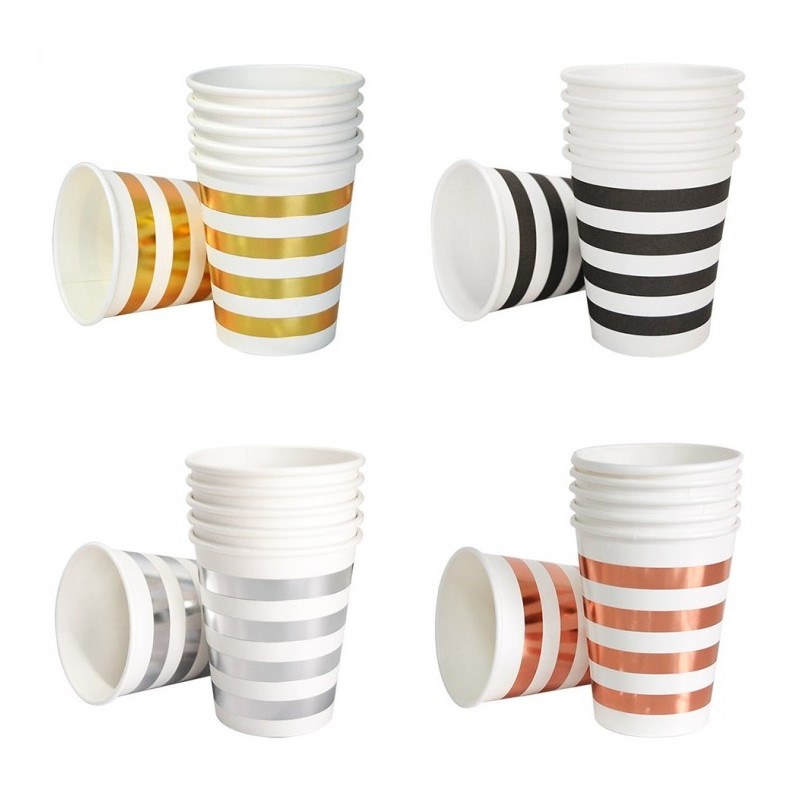 Stripe Cup (6 pieces) Disposable paper cup 8 ounces birthday party black 3ea