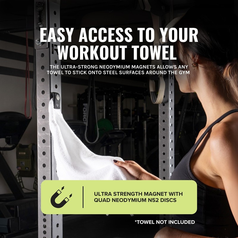 - STRONGEST HOLD: The strongest magnet. Securely holds ANY gym towel to any steel surface at the gym and exercise machines. Two round neodymium magnets, the strongest of its kind; some of the strongest rare-earth magnets gives you the mag towel setup you’ve been looking for.