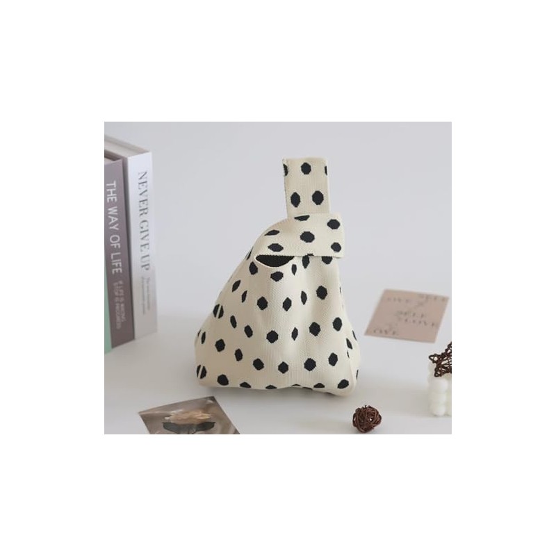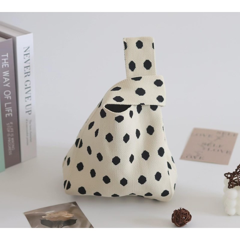 Striped Black White Knit Knot Bag Mini Canvas Tote (dot)