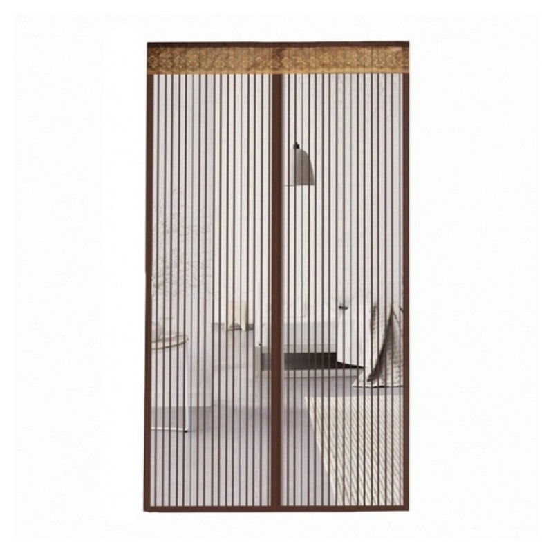 Striped Brown Magnetic Screen Door Mosquito Net 100x210cm