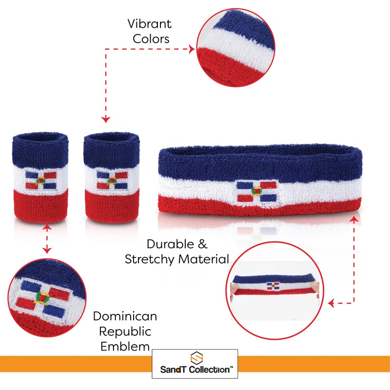 Striped Sweatband Set - Dominican Republic Sport Sweat Band and Wrist Band