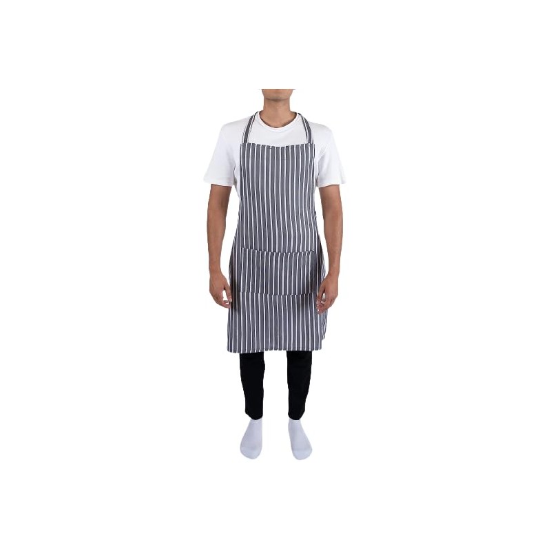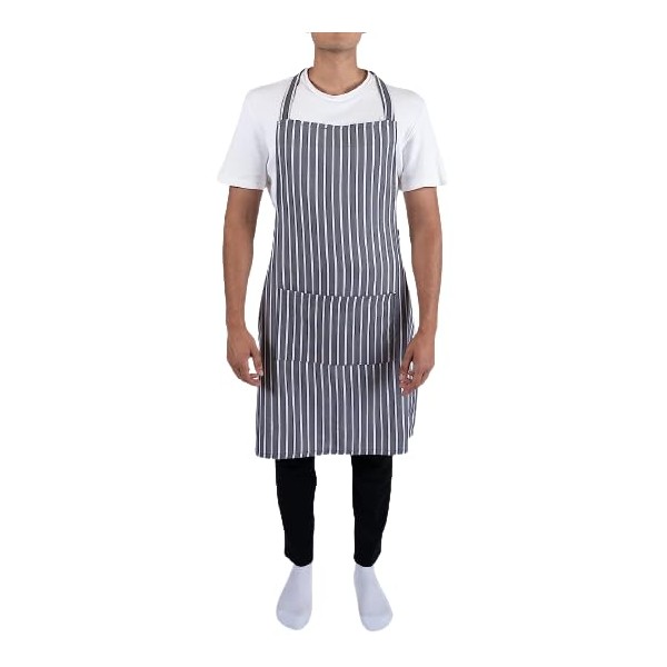Striped Unisex Adjustable Apron with Pockets - Cotton Bib Apron for Cooking, Baking, Kitchen, Restaurant, and Chef Use-Grey