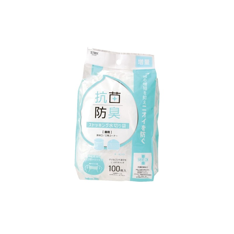 Strix Design SA-197 Deep Drying Net, 100 Pieces, White, Stocking Drainage Bags, Triangular Corners, Antibacterial, Odor Resistant, Stretchable, Extra Capacity