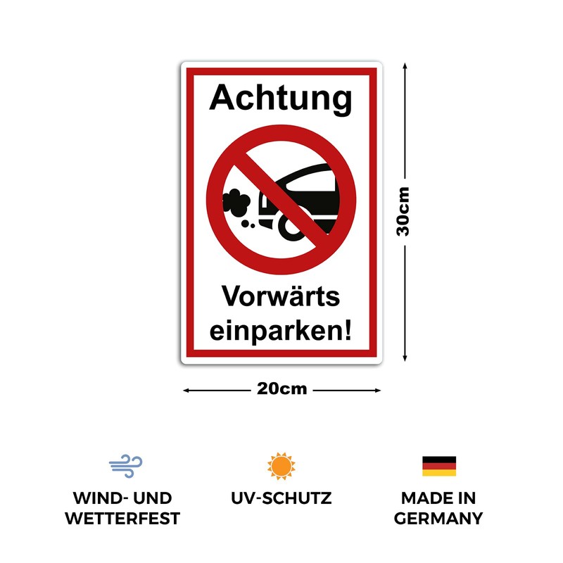 - Achtung vorwärts einparken sign, 20 x 30 cm, made from sturdy PVC hard foam board, 3 mm, pack of 3