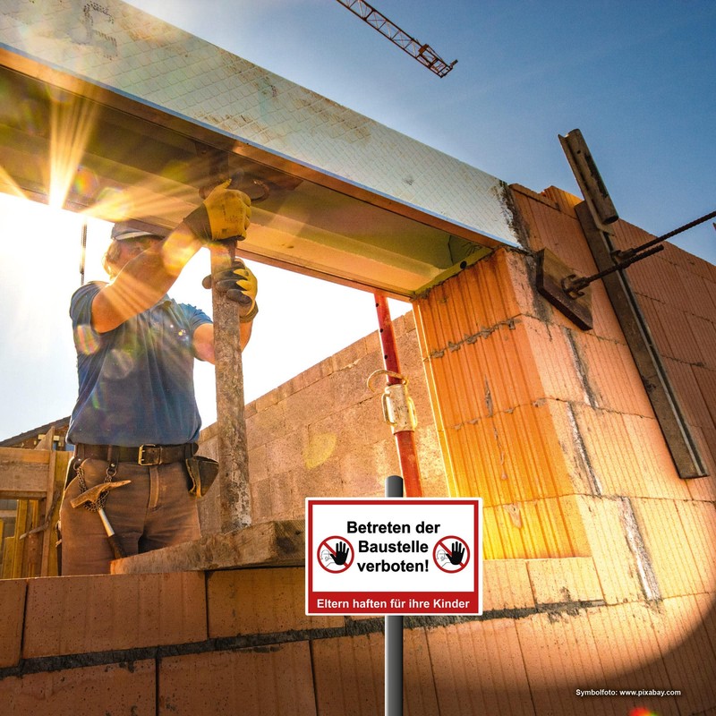 Strobo Betreten der Baustelle verboten Eltern haften für Ihre Kinder sign, 20 x 30 cm, Made From Sturdy PVC Hard Foam Board, 3 Mm, With UV Protection