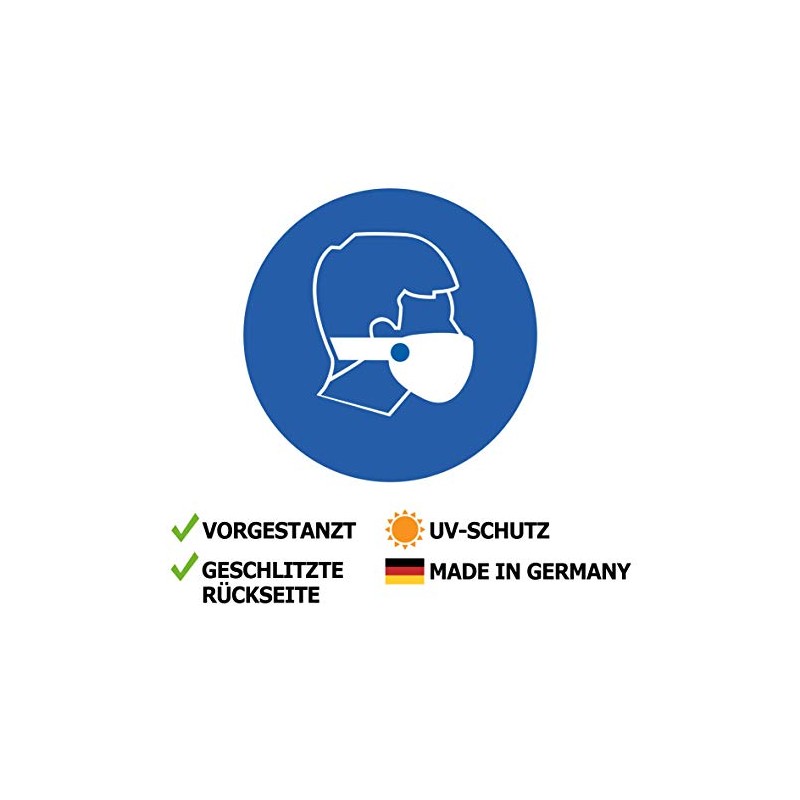 - 25 x face mask nose protection stickers, diameter 9.5 cm, pre-cut with slotted back