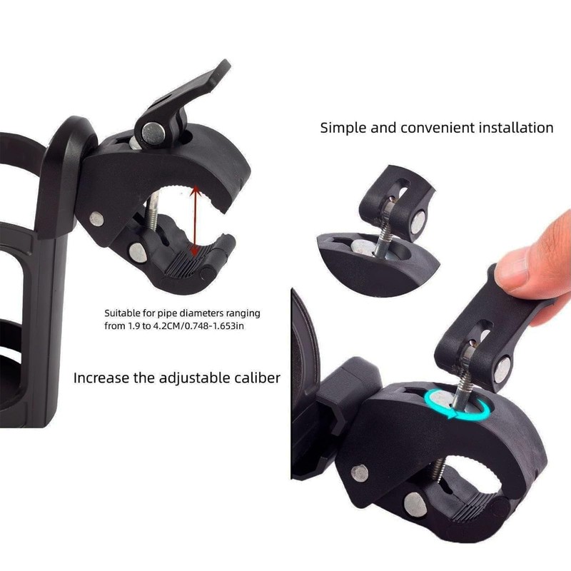 - 360°Swivel Design: This stroller cup holder with adjustable clip has a 360° swivel design, it can be installed at any angle, it can be installed on handlebar, under seat, down tube, front fork, head tube. You can clip the cup holder anywhere you want.