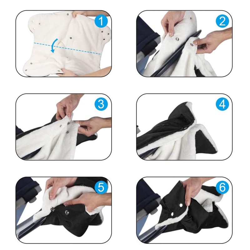 - 【Universal Size for Strollers】: Separated gloves design, This pram hand muff fits all standard strollers, buggies or bike trailers. It attaches to the handle with snaps so you can easily slide your hands in and out.