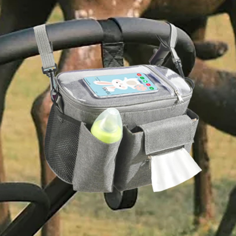 Stroller Organizer with Cup Holder, Stroller Caddy Organizer with Cup Holder, Waterproof Storage with Transparent Touch Control Secure Design for Baby Car Travel Mom Toddler Kid Use