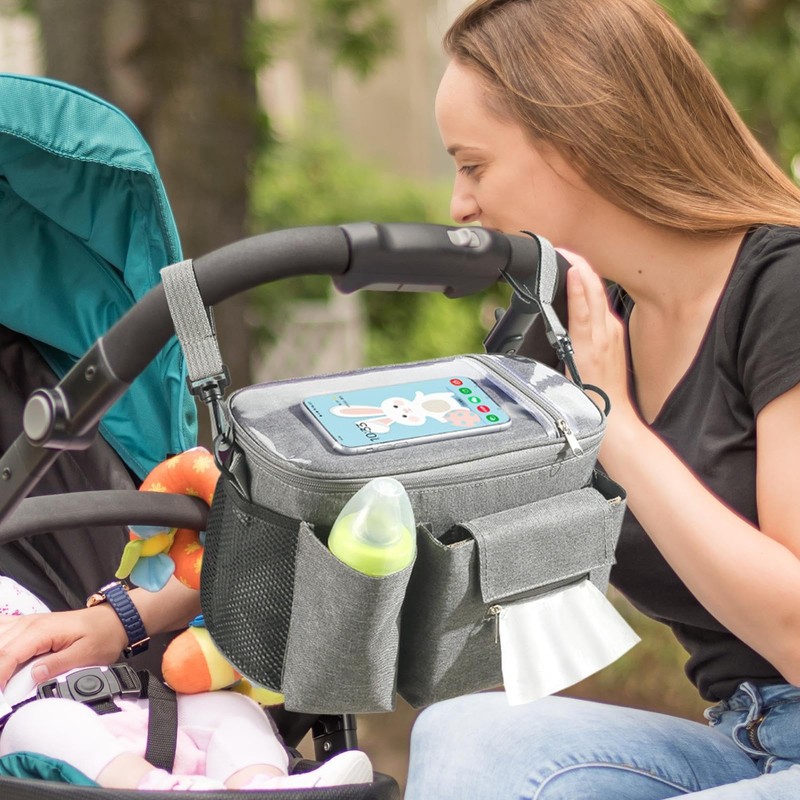 Stroller Organizer with Cup Holder, Stroller Caddy Organizer with Cup Holder, Waterproof Storage with Transparent Touch Control Secure Design for Baby Car Travel Mom Toddler Kid Use