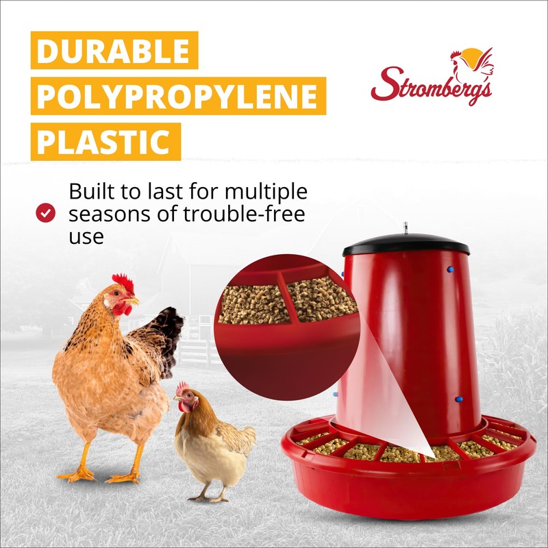 Stromberg's 50 lb Capacity Hanging Feed Saver Feeder, Large Capacity Durable Feeder with Feed Saver Grill, Perfect for Poultry, Durable Polypropylene Plastic, 22" W x 24" H, Trough 4.5" High