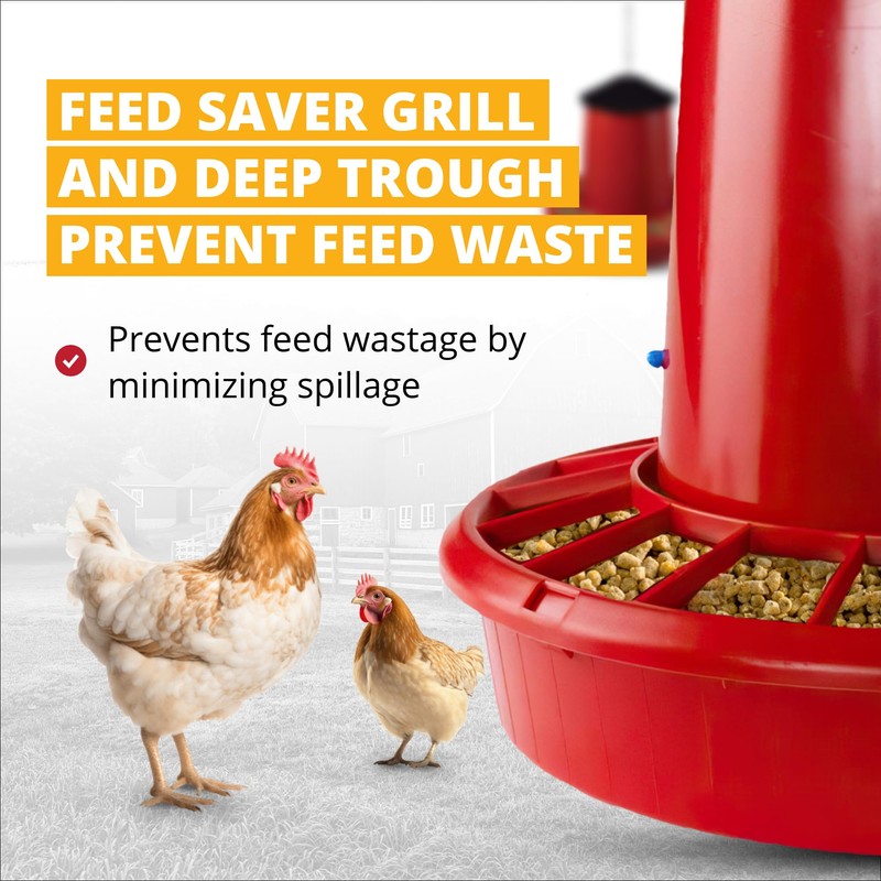 - FEED SAVER GRILL FOR POULTRY: The innovative feed saver grill helps prevent birds from wasting feed by shaking their heads; it keeps feed inside the feeder where it belongs.