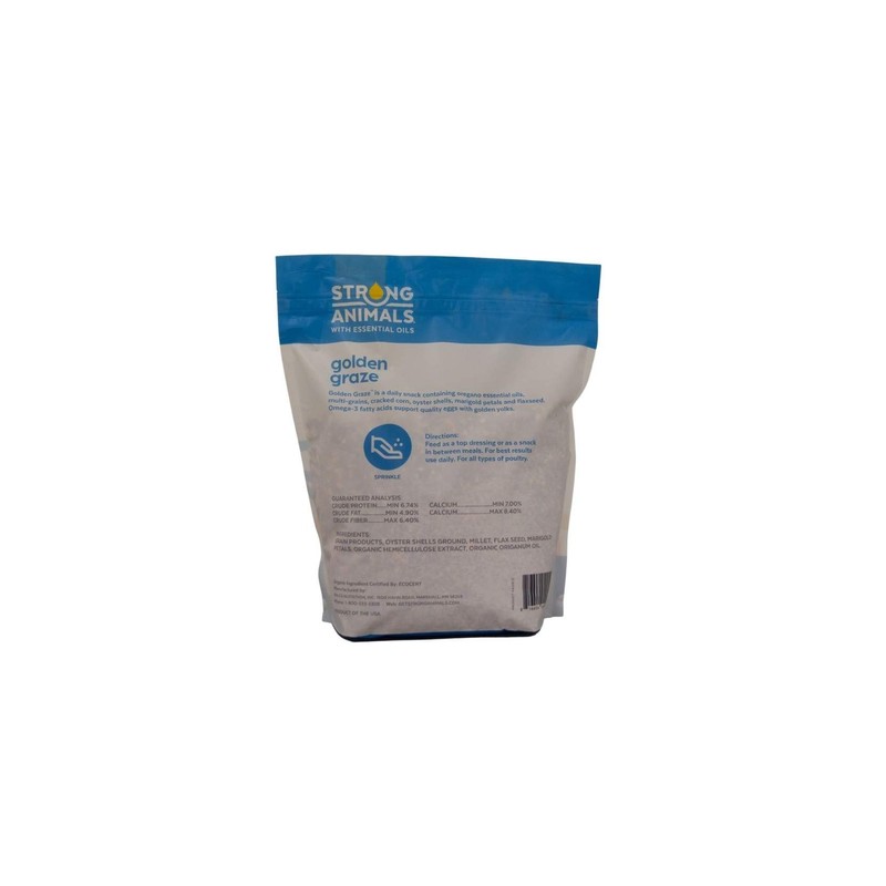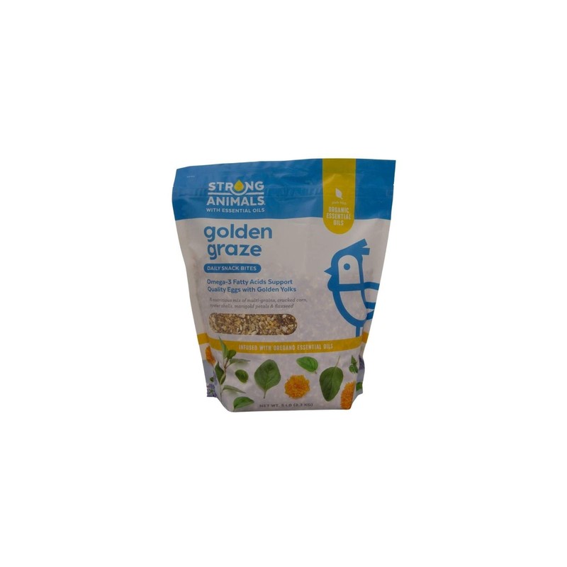 Strong Animals Golden Graze - Daily Snack for Chickens containing Oregano Essential Oil, Multi-Grains, Cracked Corn, Oyster Shells, Marigold Petals and Flaxseed (5 lbs)