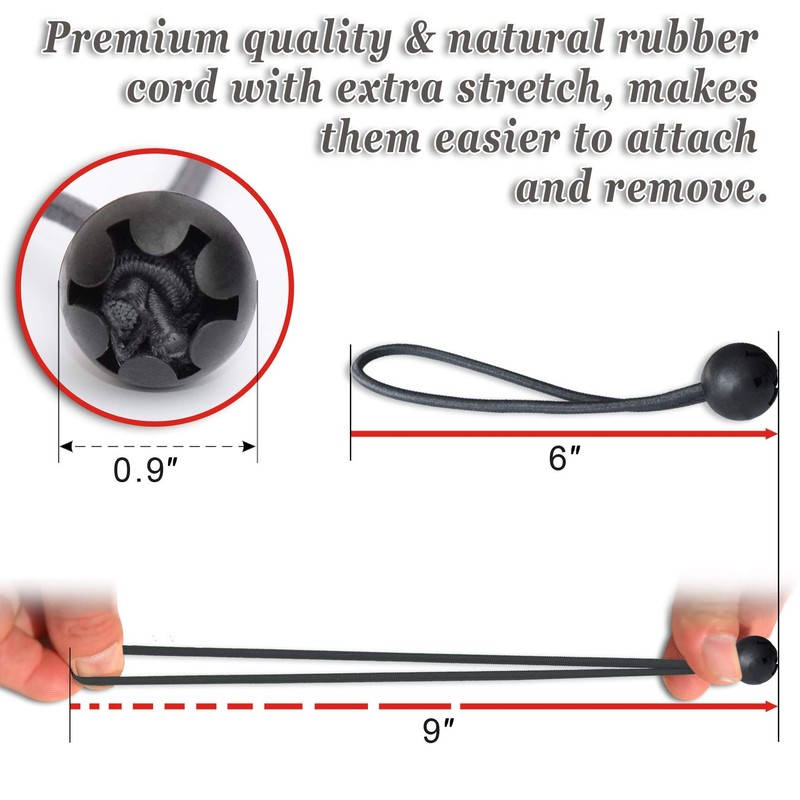 - Bungee cord is 6 inches in length and ball diameter is 1 inch.