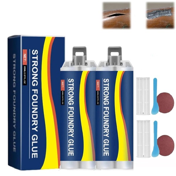 Strong Foundry Glue for Metal, High Temperature Resistant Casting Repair, Metal Repair Glue 85ml, Premium Liquid Welding Filler for Metals Defects and Repairs, Fast Curing Waterproof Liquid (2Pcs)