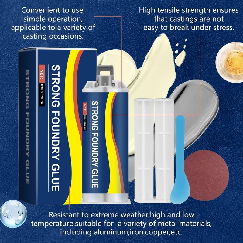 - 【Strong Foundry Glue】Casting repair glue for metal is designed to withstand cooler temperatures, ensuring a slightly hardened adhesive. It offers an instant, long-lasting bond, making it the perfect tool for all types of metal surface repairs. In case of hardening, simply soak the a tube glue in hot water for softening before use