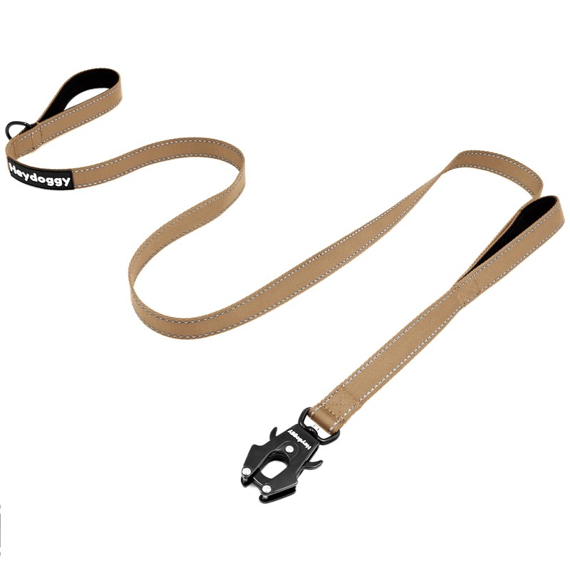 Strong Heavy Duty Dog Leash - 5ft Reflective Nylon Training Leash with Soft Padded Double Handle & Auto Lock Frog Clip - Safety Traffic Control for Large Medium Small Dogs No Pull Walk Khaki,5ft