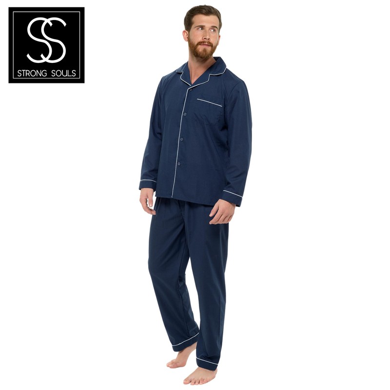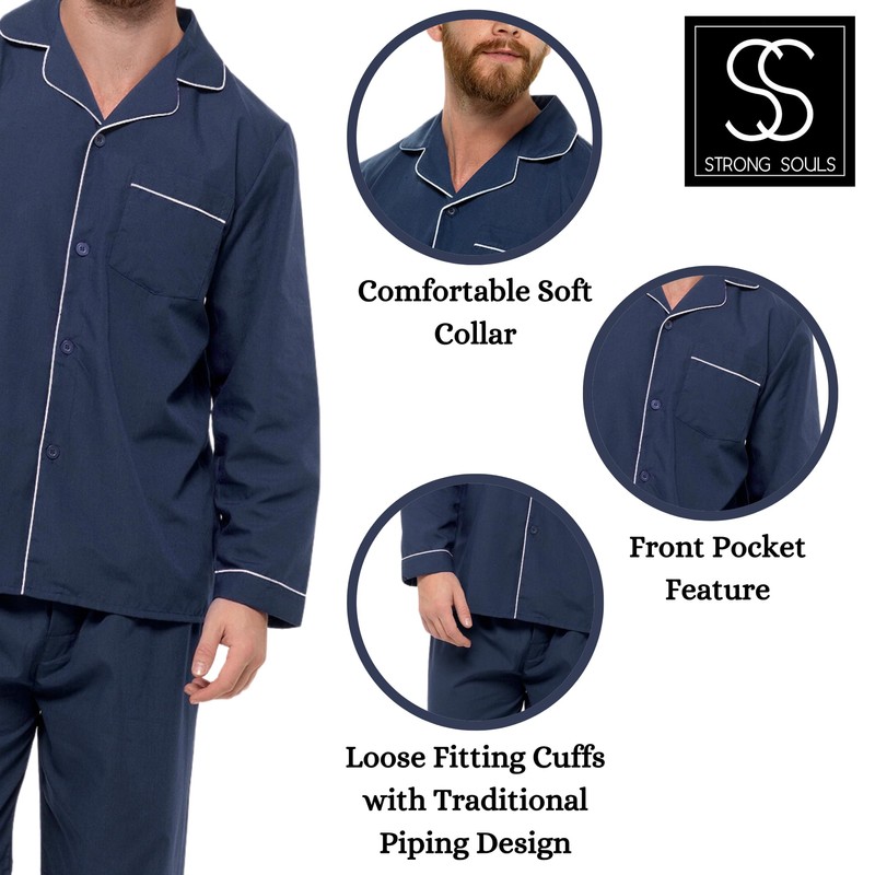 Strong Souls Mens Pyjamas Traditional 2 Piece Pjs Dark Navy Extra Large