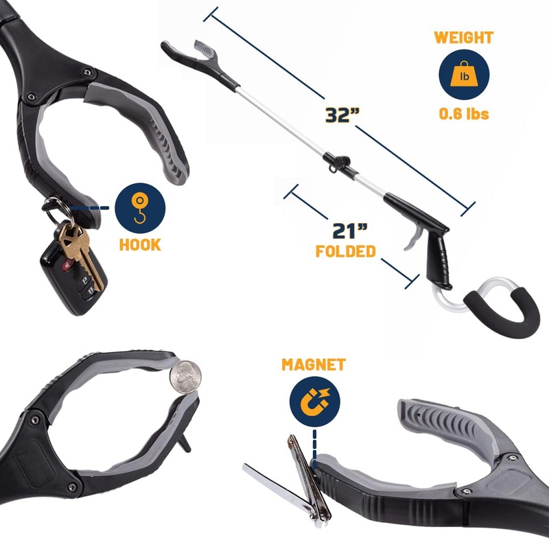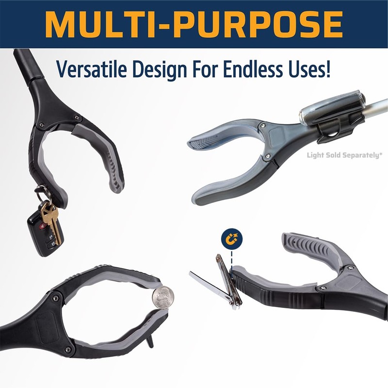 - Precision Claw Mechanism: Engineered with a precision claw mechanism, this grabber ensures a firm and secure hold on items of various sizes and weights. From lightweight keys to heavier cans, the StrongArm Reacher Grabber provides reliable grasping power, giving you confidence in every reach. Never struggle to pick up objects again, thanks to its advanced gripping technology.