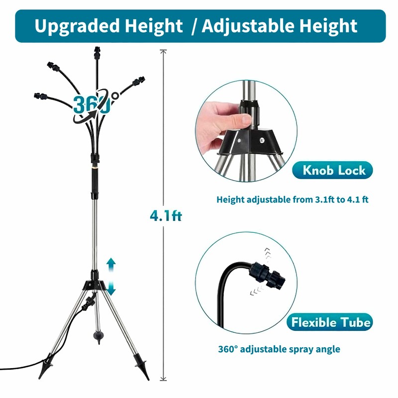 • 【Commercial-Grade Construction】Stainless steel tripod base withstands weather elements, paired with anti-clog brass nozzles that resist rust and mineral buildup for years of reliable use.