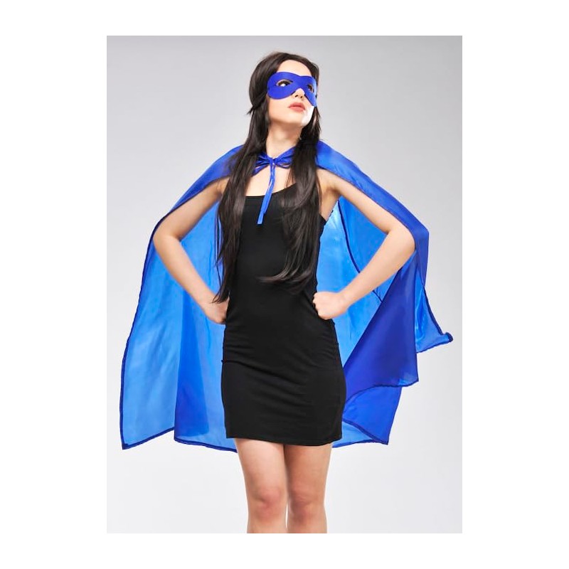 - MASK FEATURES: Comfortable elastic-secured eye mask in matching royal blue, perfectly coordinated with the cape for a cohesive look