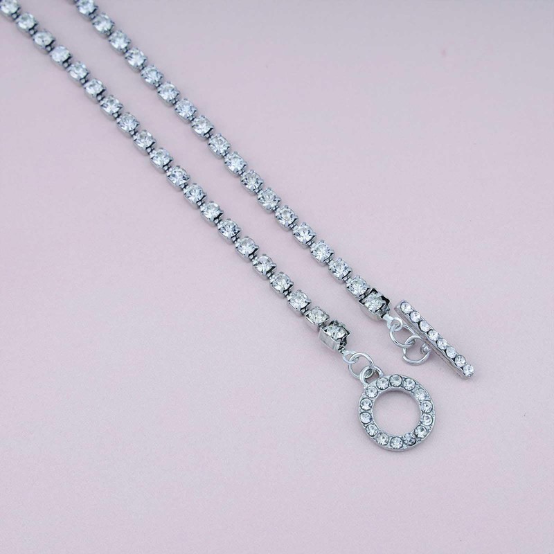 - Tennis chain necklace.Item Details:Handmade Item.Size:As Shown.Color:Silver.Materials:Quality Alloy/rhinestone.Location:Neck.Style:Boho/Vintage.