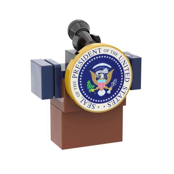 Now you presidential minifigs have the proper place to make their speeches or important announcements to their citizens, with this minifig scale podium, complete with the custom printed presidential seal.