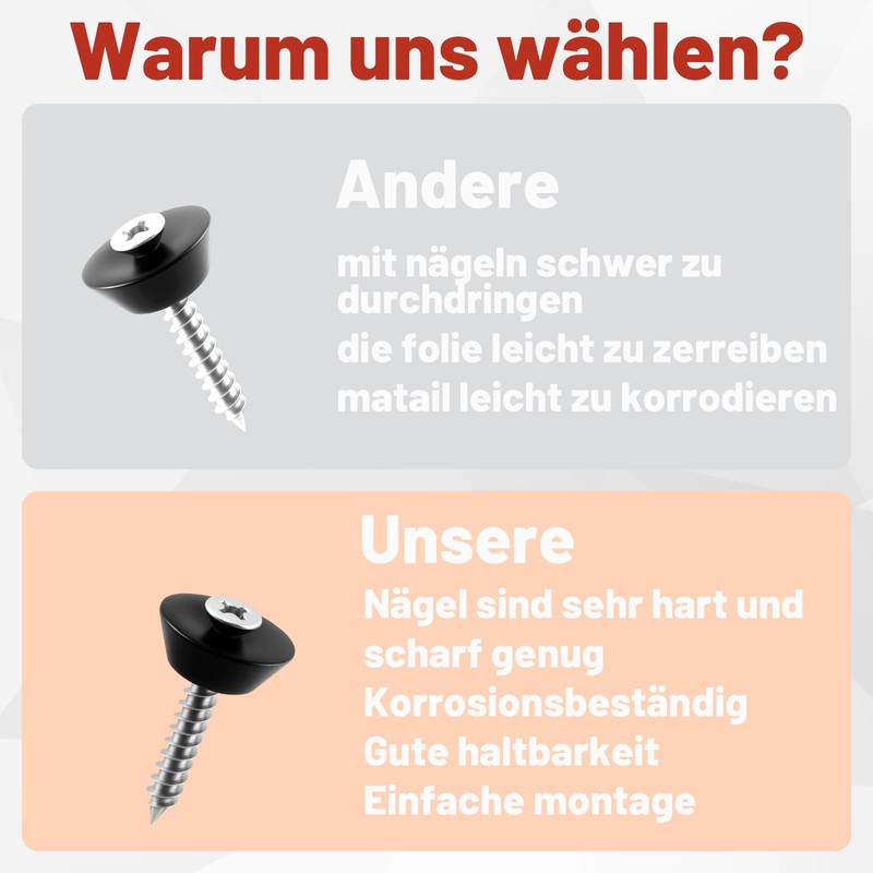 The sealing nails are made of durable material that is durable and corrosion resistant. The black sealing discs provide waterproof insulation and prevent foreign objects from entering. The easy installation without special tools makes this set particularly user-friendly.
