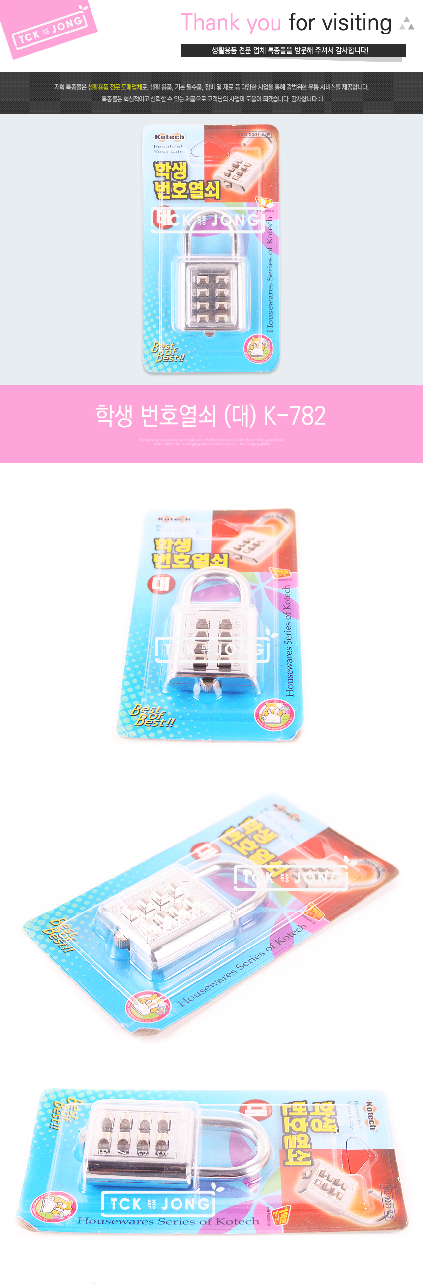 Student Combination Lock (Large) K-782 (3x6x1cm) 3ea
