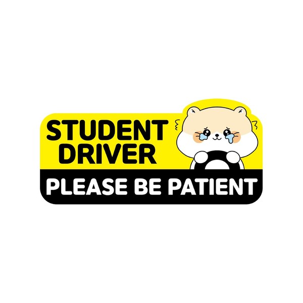- 🐹 Cute hamster design : The hamster holding the steering wheel and trembling indicates that you are a beginner driver. The combination of yellow and black, along with the cute hamster character, encourages other drivers to be more lenient towards you, giving you plenty of space and respect.