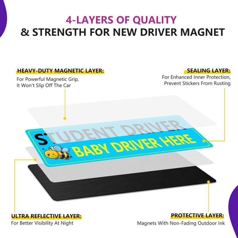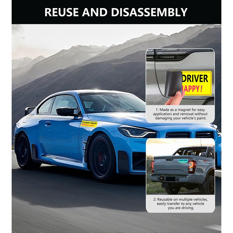 • Reusable&Removable: Applying the magnetic sticker is a breeze. Simply place it on the desired location of the vehicle, and it will stick right away. Durable coating protects against wear and tear. When the student no longer needs it, it can be easily removed without leaving any residue on the vehicle's paint. This convenience makes it suitable for temporary use on different vehicles.