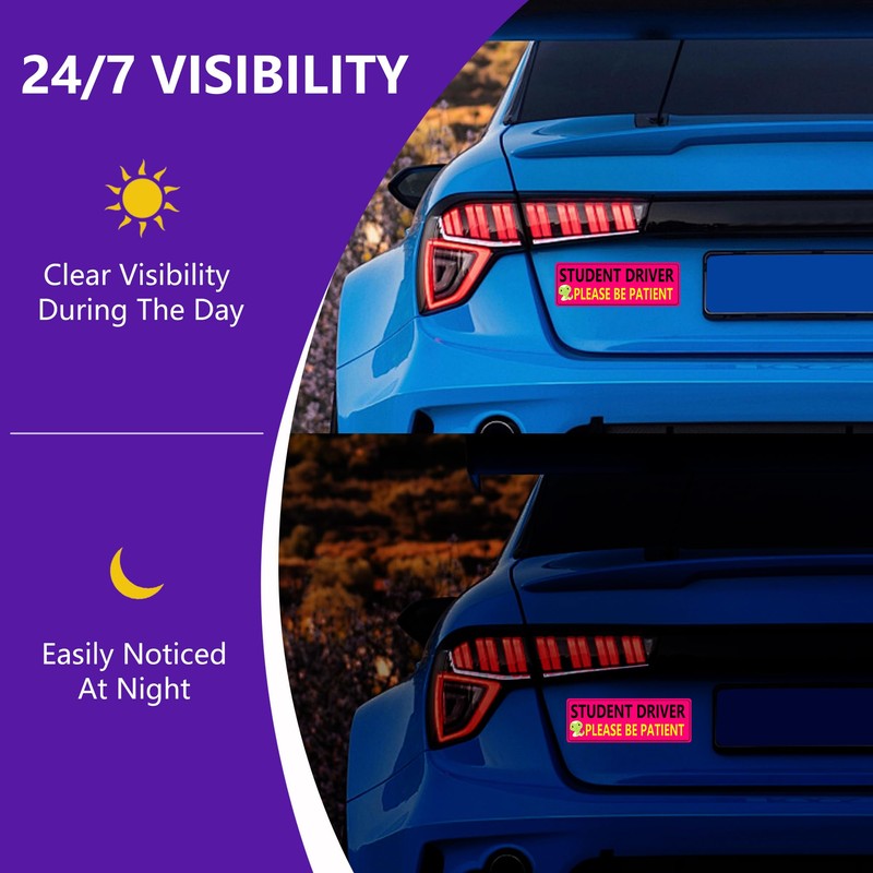 • High Visibility: Our student driver magnetic sticker is designed with bright colors and bold fonts for maximum visibility. It stands out clearly on the vehicle, making it easily noticeable to other drivers on the road. This friendly tone fosters empathy from experienced drivers, enhancing safety during the learning process.