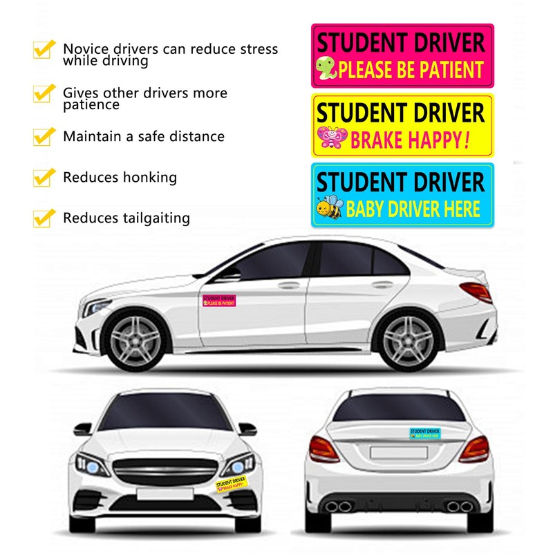 • Student Driver Car Magnet: Made from high-quality vinyl, the student driver magnets is resistant to scratches, fading, and weather damage. It can withstand exposure to sunlight, rain, snow, and extreme temperatures without losing its color or shape. This durability ensures that the sticker remains in good condition throughout the student's learning period.