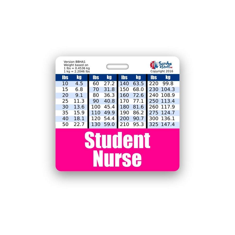 Student Nurse Badge Buddy Horizontal w/Height & Weight Conversion Charts (Standard, Pink)