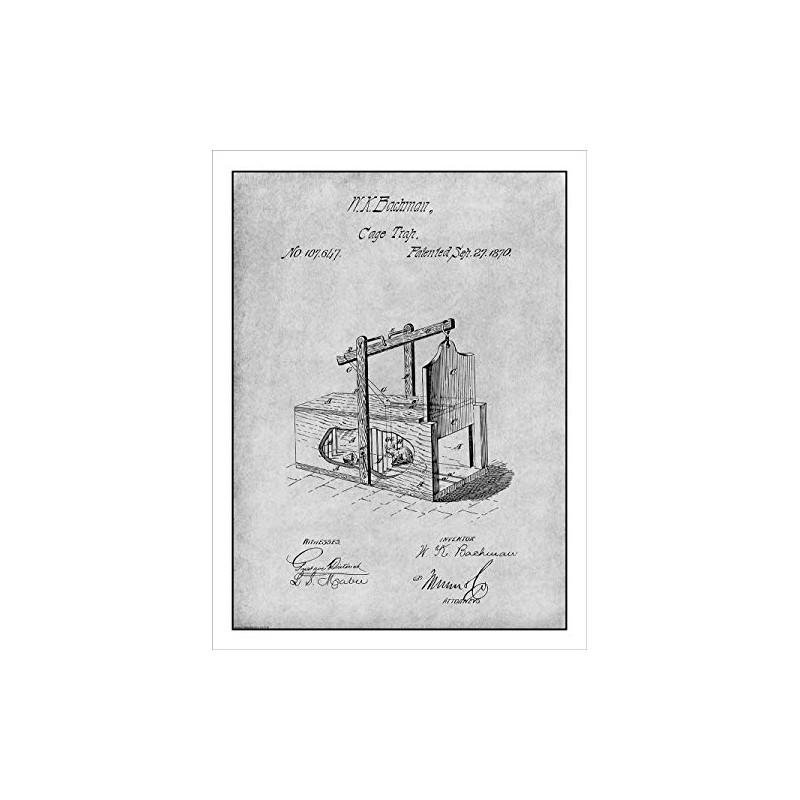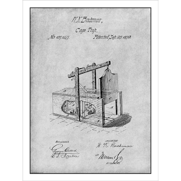 Studio 21 Graphix 1870 Bachman Mouse Trap Patent Print Art Poster UNFRAMED Gray 18" X 24"