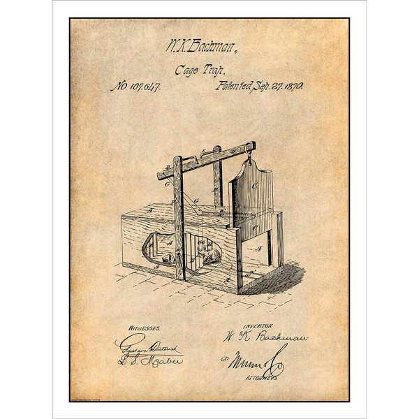 Studio 21 Graphix 1870 Bachman Mouse Trap Patent Print Art Poster UNFRAMED Parchment 18" X 24"