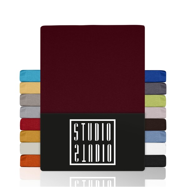 STUDIO Basic Fitted Sheet, 90 x 190 cm, 100% Combed Cotton, Oeko-Tex Standard 100, Bed Sheet, Jersey, Burgundy