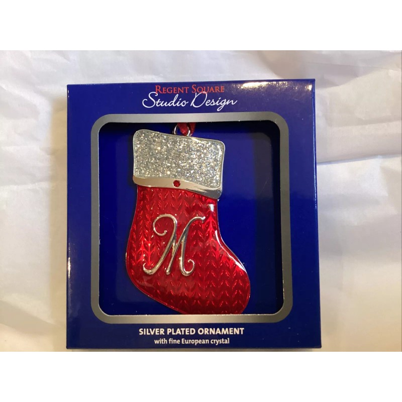 Studio design NEW STUDIO DESIGN regent square new letter "M” stocking red monogram ornament