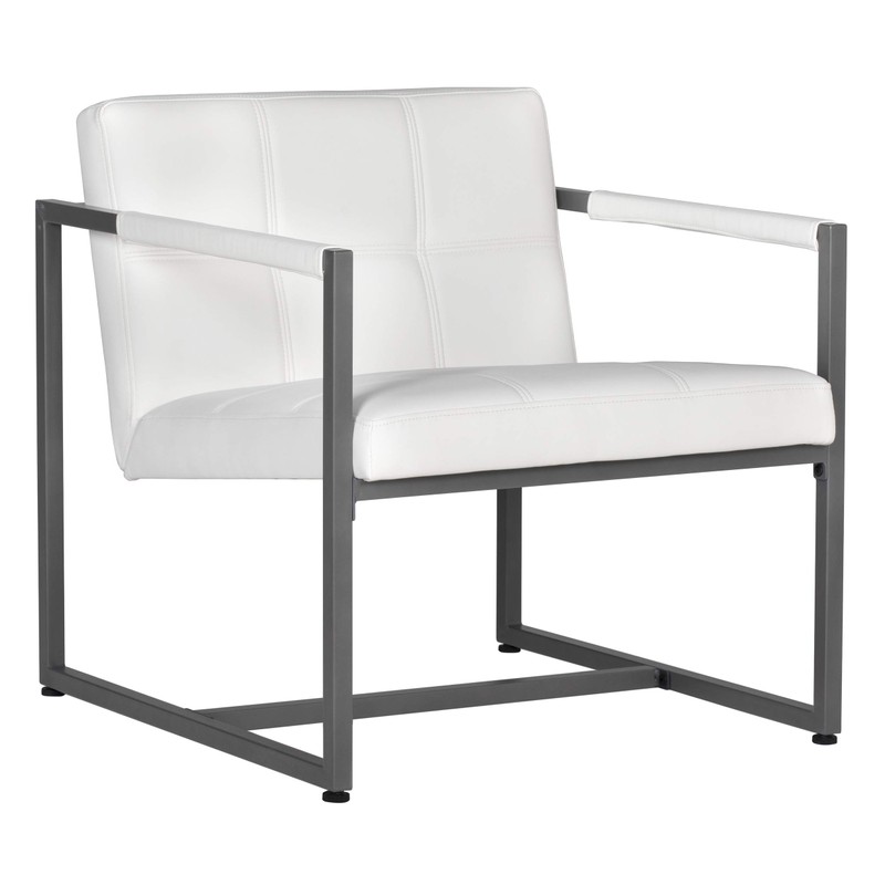 Studio Designs Home Modern Accent Chair Camber Mid-Century, Pewter Grey Metal Frame & White Bonded Leather