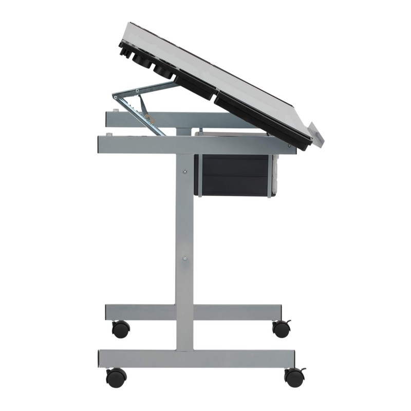 - SUSTAINABLE DESIGN: The heavy gauge and powder-coated steel frame construction makes this glass drafting table durable and ready for years of use; Includes four casters for mobility with two locking