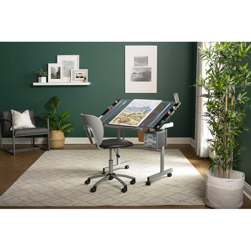 - VISION CRAFT AND DRAWING STATION: Modern and stylish design with silver-blue tempered safety glass workspace and silver table legs; Perfect for diving into a variety of creative projects, including painting, drawing, sketching, writing, and more