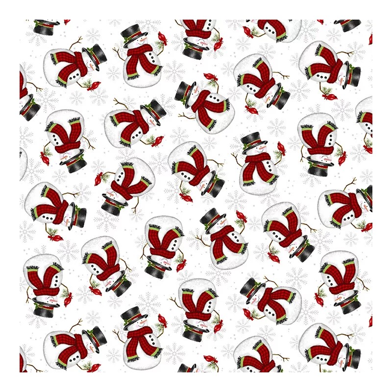 Studio E Fabrics Christmas Fabric | Merry Town Snowman Toss White | Studio E YARD