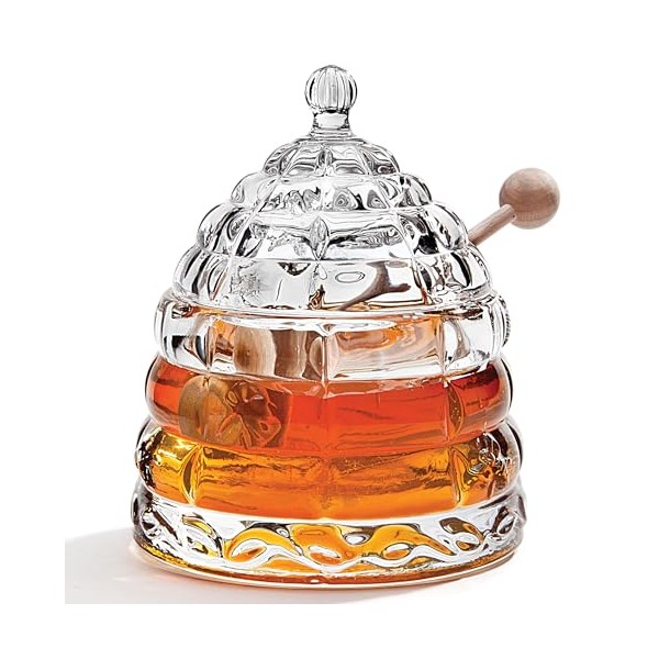 STUDIO SILVERSMITHS Crystal Honey Jar, Beehive Honey Dish